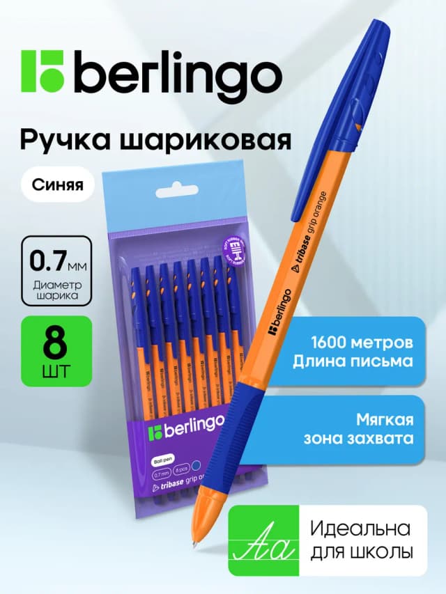 Шариковые ручки синие 0,7 мм, набор 8 штук
