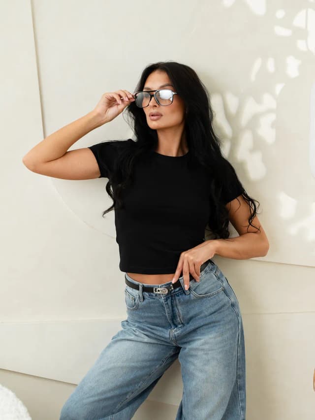 Футболка укороченная в рубчик хлопок
