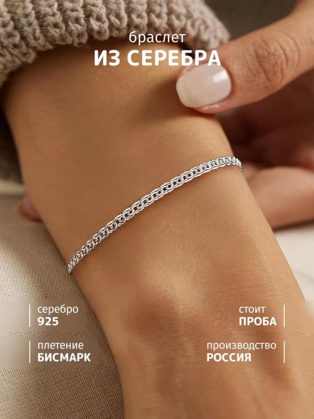 Браслет серебро 925 пробы плетение бисмарк