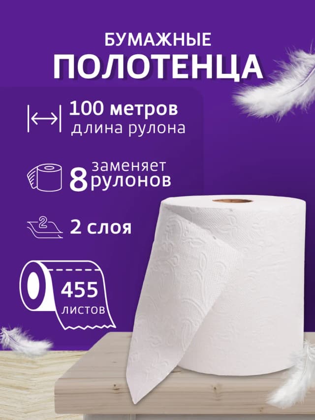 Бумажные полотенца в рулоне салфетки двухслойные 100 метров