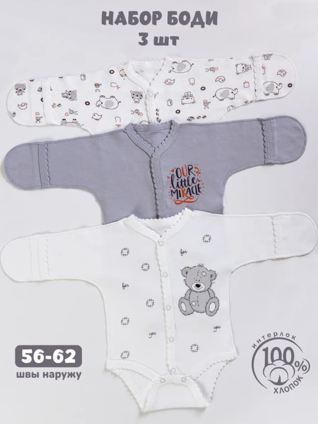 Боди для новорожденных с коротким рукавом набор 3 шт