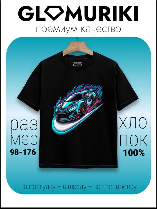 Футболка черная с принтом машинка