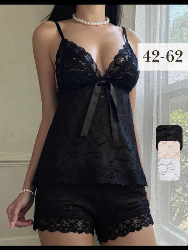 Пижама шелковая с шортами кружевная сексуальная