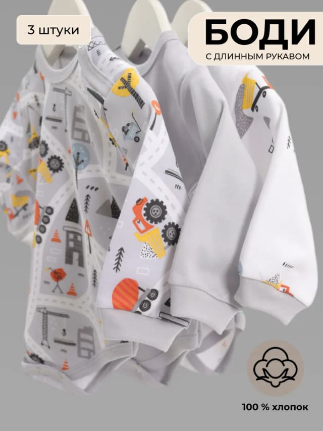 Боди с длинным рукавом набор 3 штуки