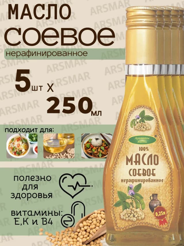 Соевое масло нерафинированное холодного отжима 5шт по 250мл