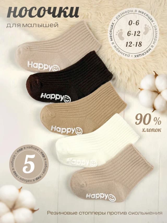 Носки для новорожденных нескользящие набор 5 пар