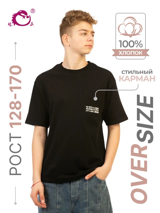 Футболка для мальчика оверсайз с карманом и принтом