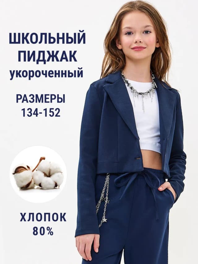 Пиджак школьный укороченный из хлопкового трикотажа