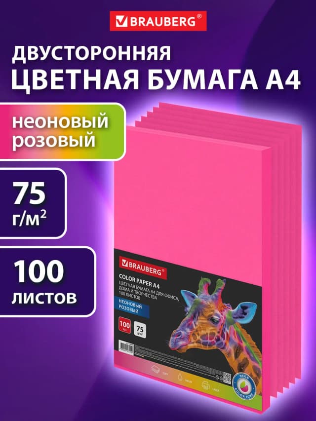 Цветная бумага А4 для школы розовая двусторонняя набор 100 л