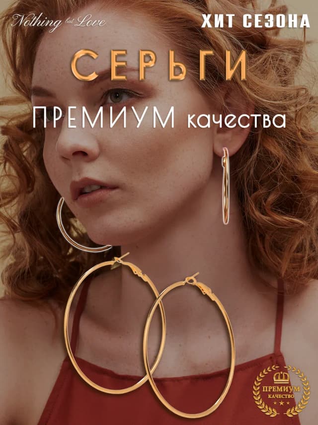 Серьги кольца большие золотистые хупы минимализм