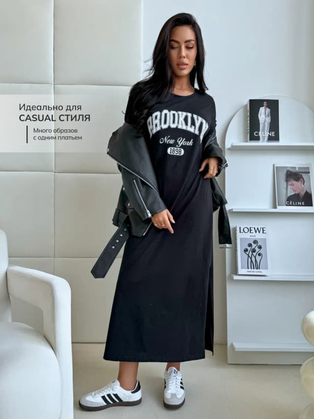 Длинное трикотажное платье оверсайз