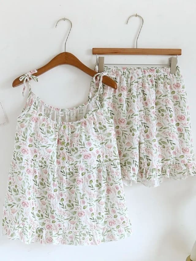 Сорочка домашняя на широких бретельках с рисунком и вырезом