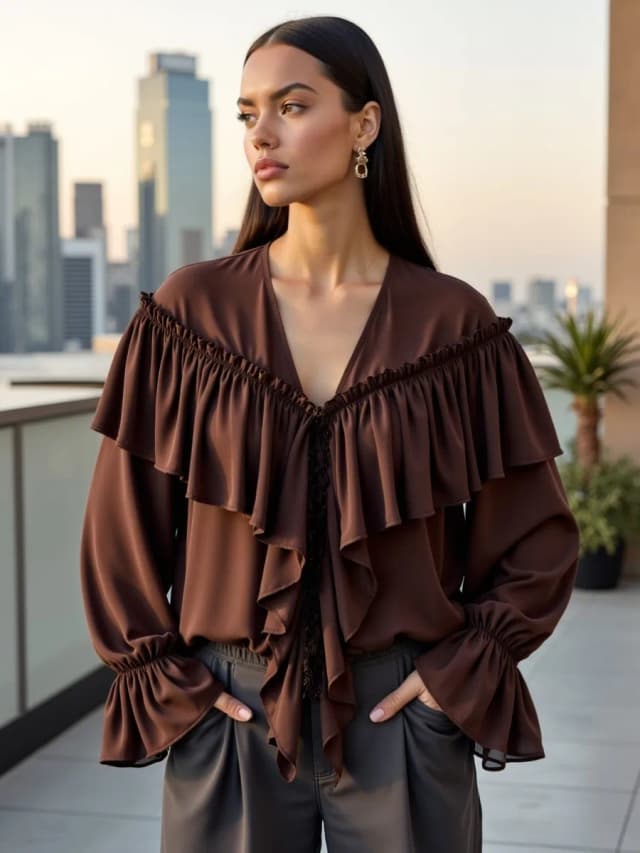 Блузка с воланами и рюшами нарядная оверсайз
