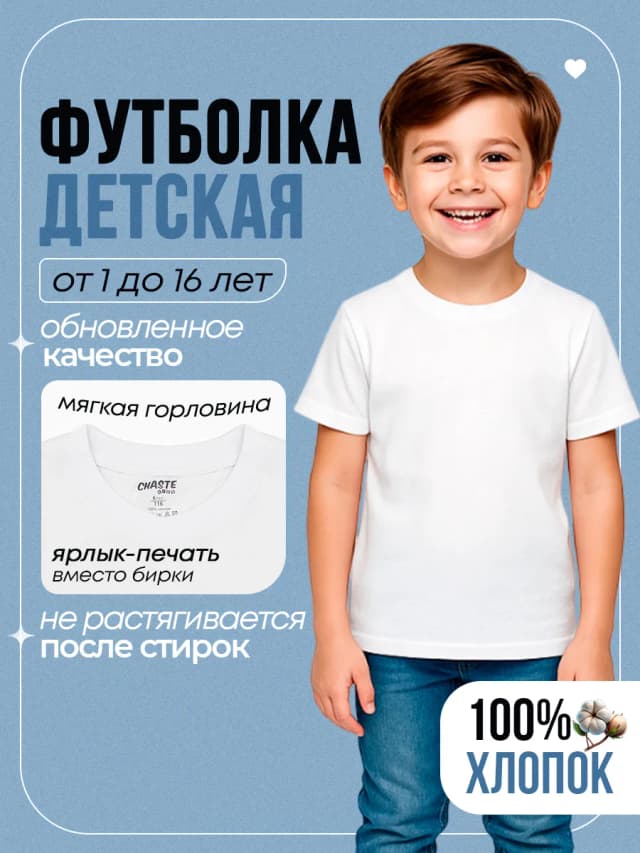 Футболка базовая детская для мальчика и девочки