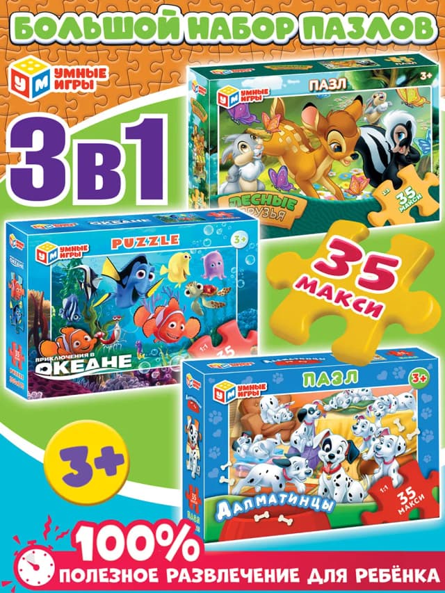 Макси пазлы для детей 3 лет набор 3в1