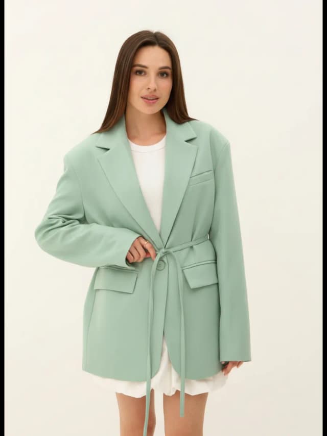 Пиджак оверсайз удлинённый прямого кроя с поясом
