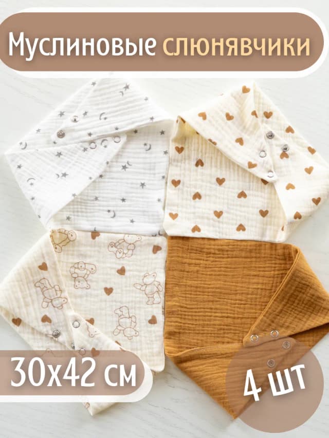 Слюнявчик для кормления новорожденных муслиновый набор 4 шт