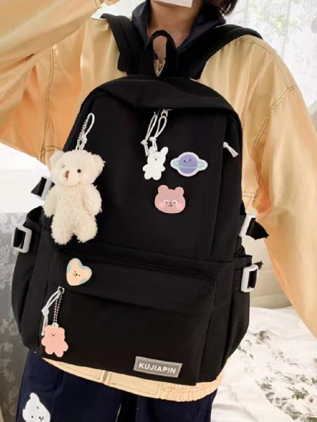 Рюкзак школьный для подростков с брелком-мишкой