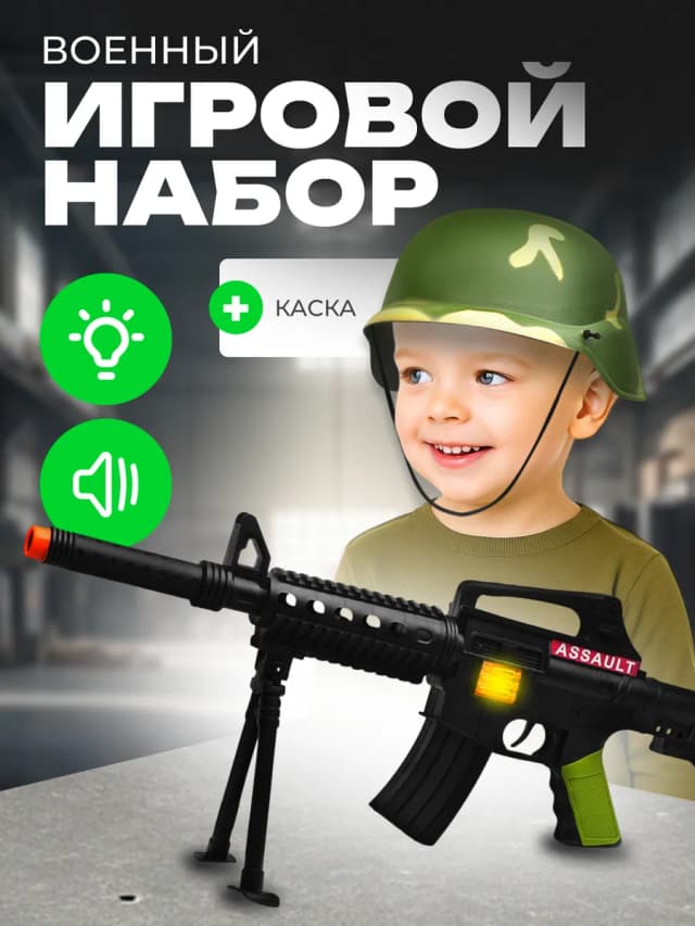 Игровой набор автомат игрушечный Военный шлем для мальчика