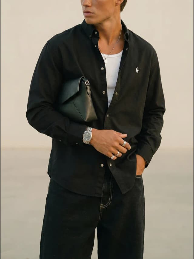 Рубашка черная с длинным рукавом