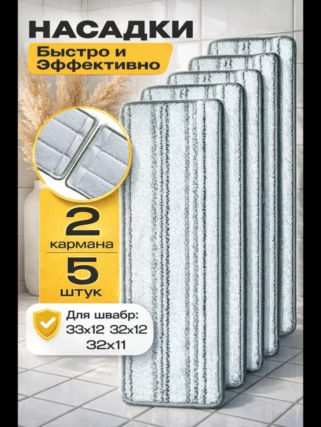 Сменные насадки для швабры с двумя карманами 5шт