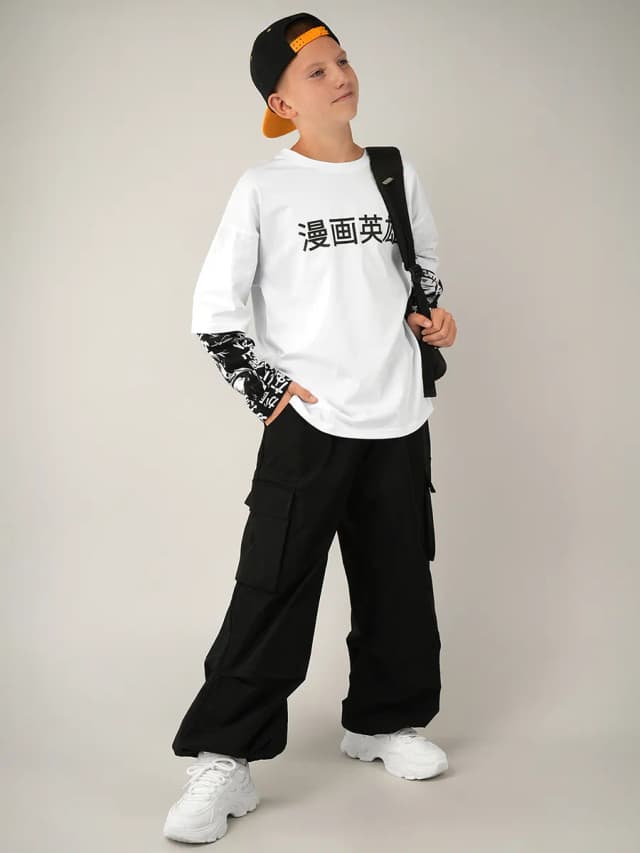 Лонгслив оверсайз с двойным рукавом детский