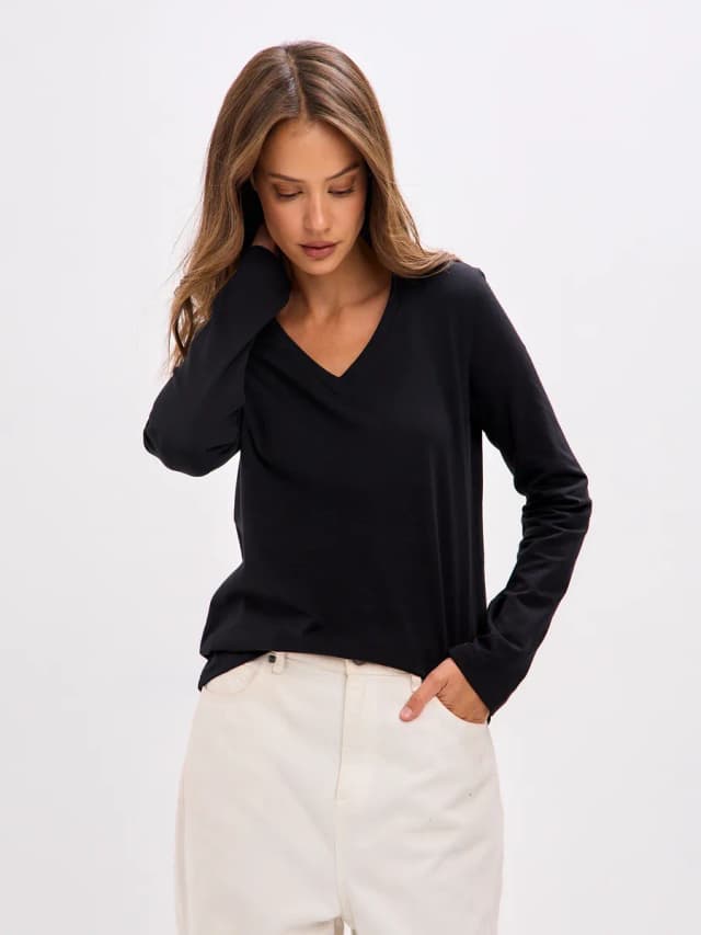 Лонгслив черный V-вырез хлопок
