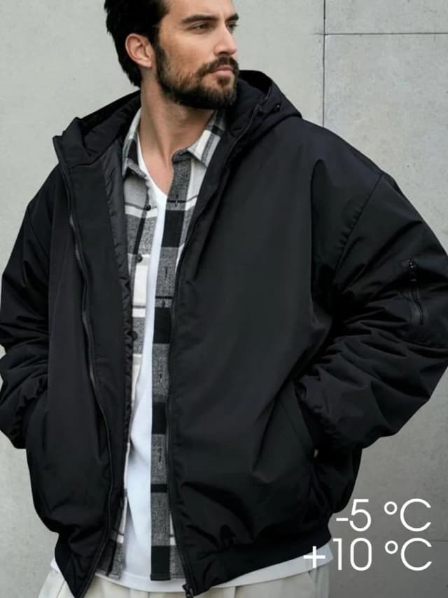 Бомбер утепленный с капюшоном весенний