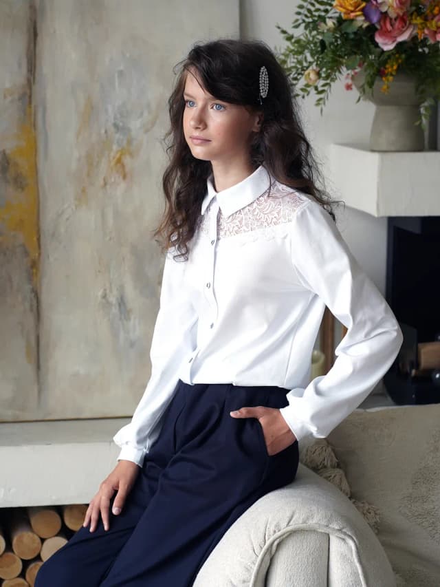 Рубашка школьная подростковая белая оверсайз с бантиками