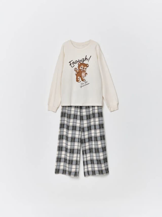 Пижама со штанами и лонгсливом трикотажная с принтом