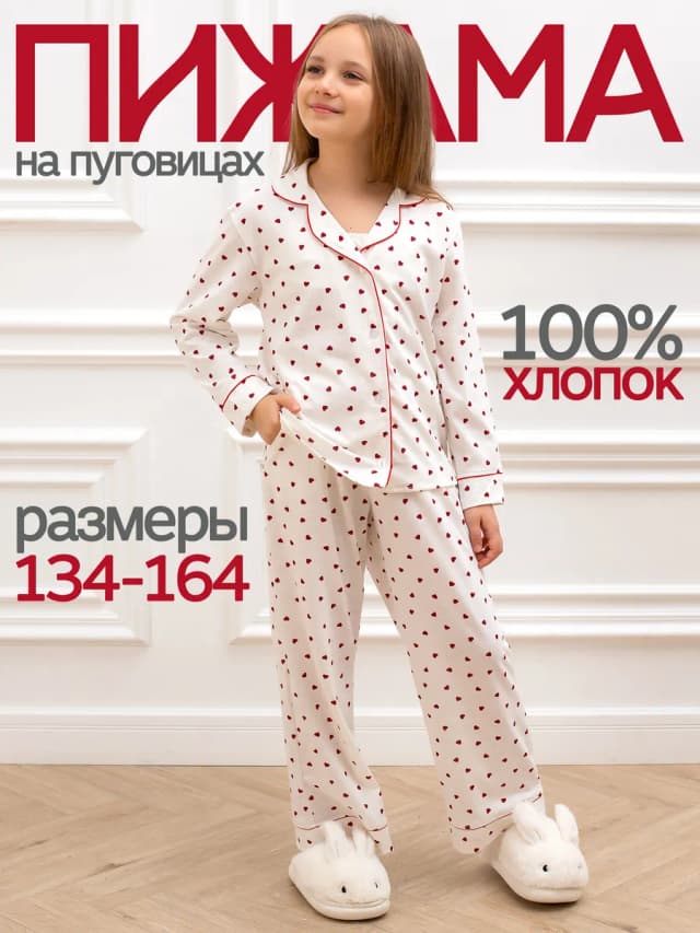 Пижама со штанами и рубашкой с сердечками