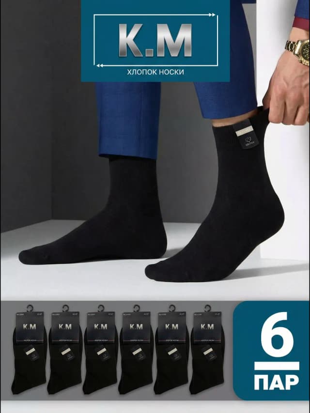 Набор высоких носков из хлопка в подарочной упаковке, 6 пар