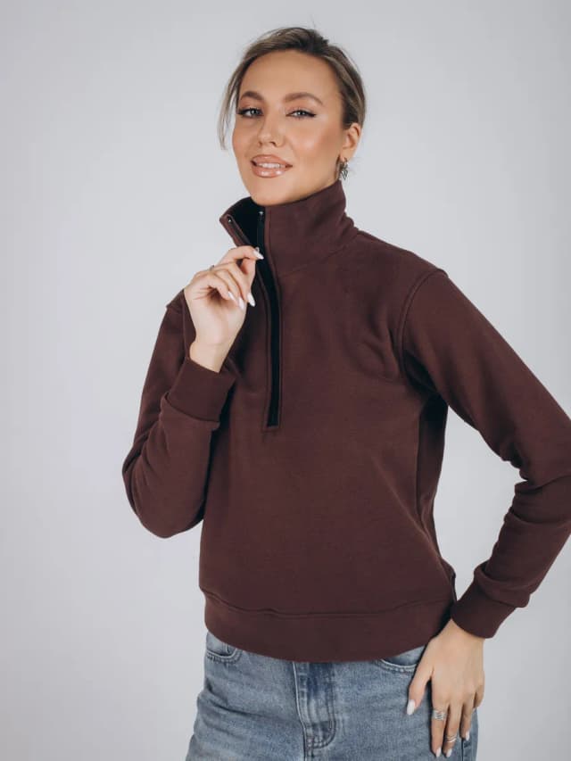 Свитшот шоколадный с молнией с начёсом кофта тёплая