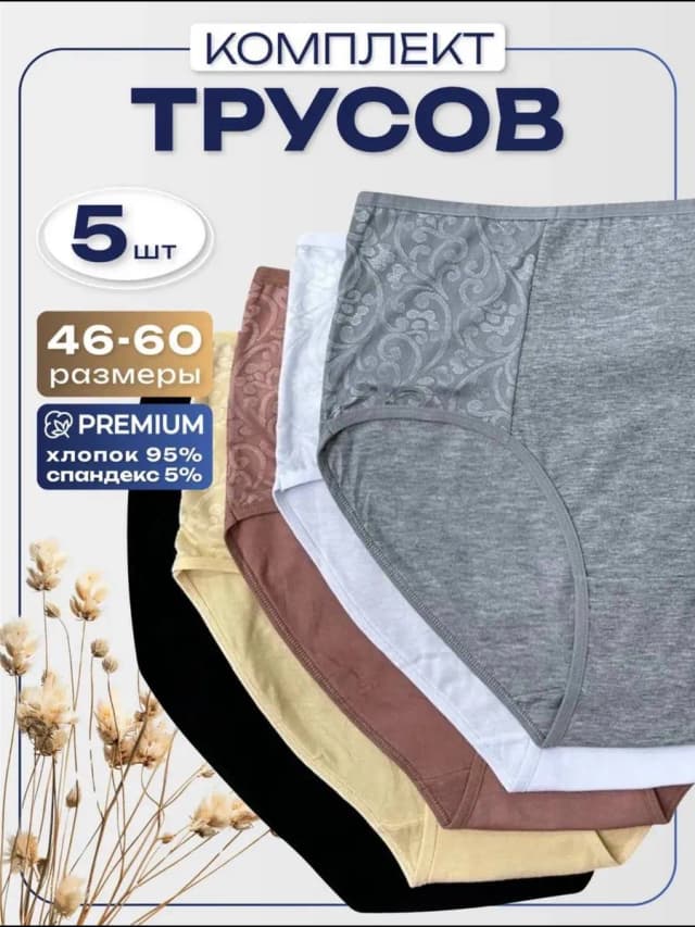 Трусы набор хлопок с высокой посадкой - 5 шт