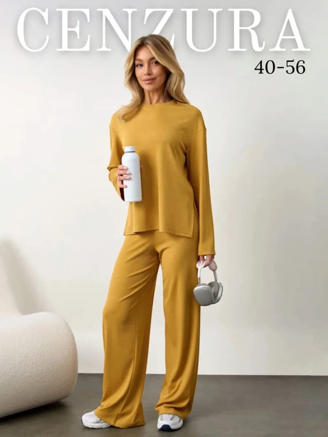 Костюм брючный трикотажный палаццо в офис
