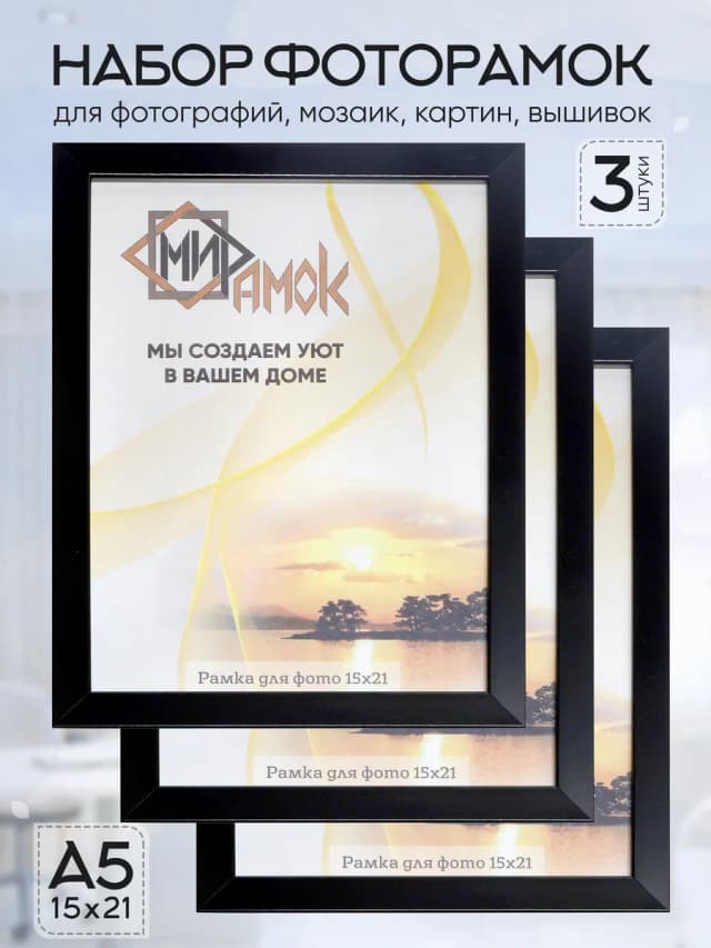 Фоторамка настольная и на стену черная набор 3 шт. 15х21 А5