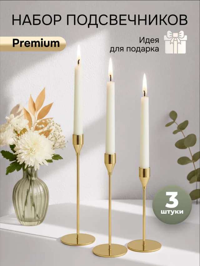 Подсвечники для свечей набор 3 штуки золотые металлические