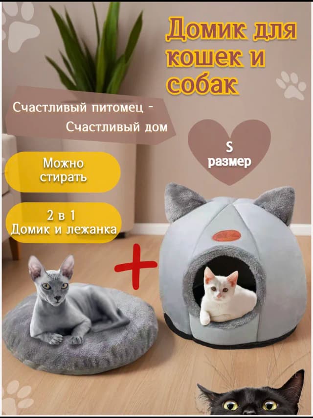 Домик для кошки и собаки Лежанка для мелких и средних пород