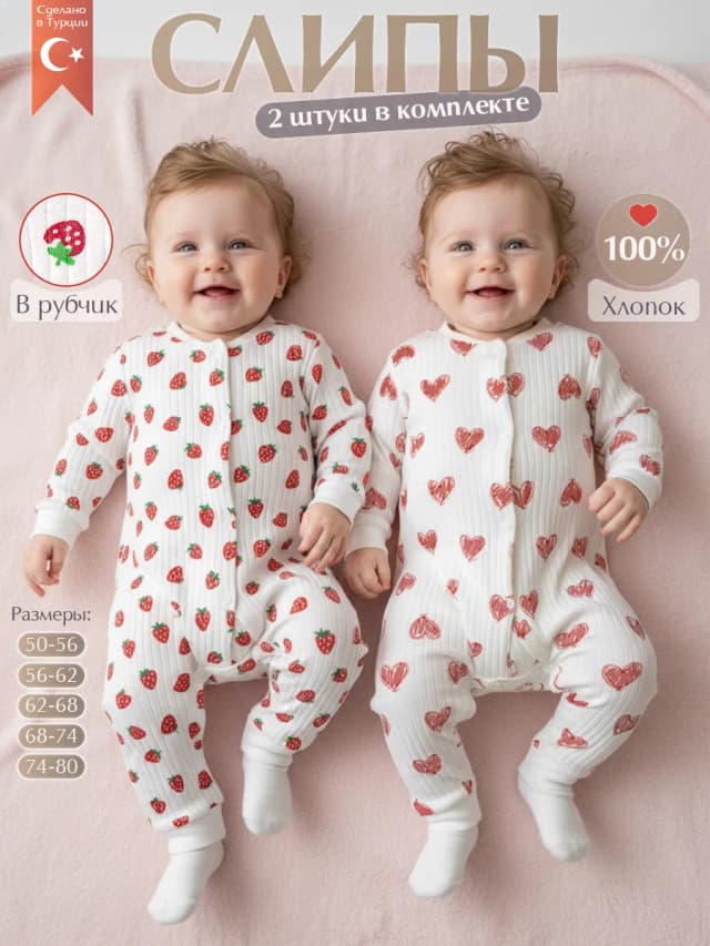Комбинезон слип для новорожденных, комплект 2 шт 60