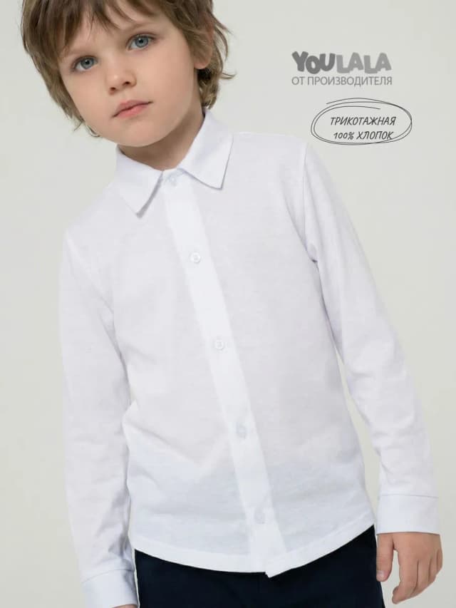 Рубашка с длинным рукавом для мальчика трикотажная белая