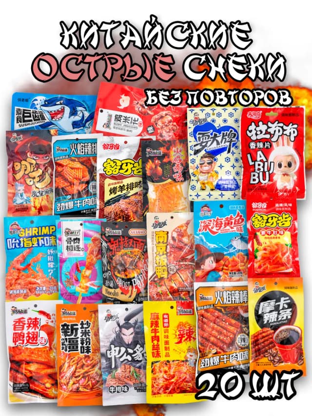 Большой набор острых китайских снеков 20 вкусов