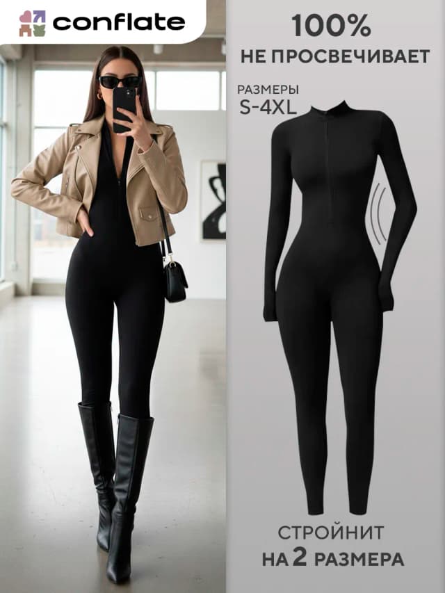 Комбинезон спортивный для фитнеса и йоги на молнии