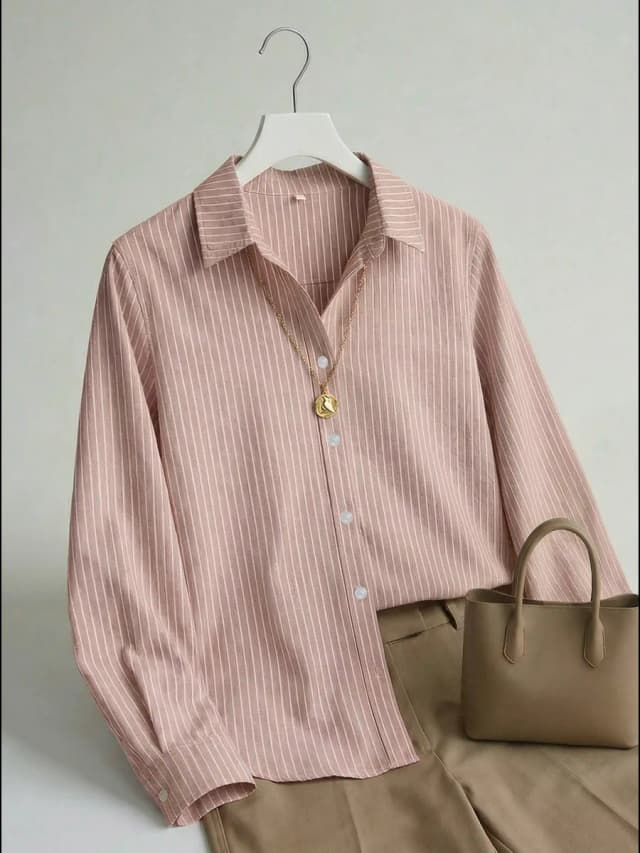 Коричневая рубашка в полоску нарядная вечерняя хлопковая