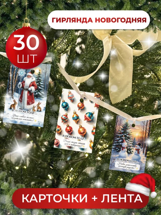 Новогодние открытки флажки, гирлянда для украшения дома