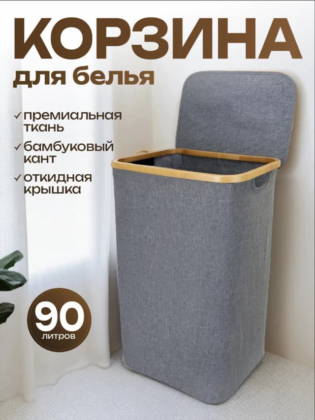 Корзина для белья и игрушек квадратная чёрная 34*34*56