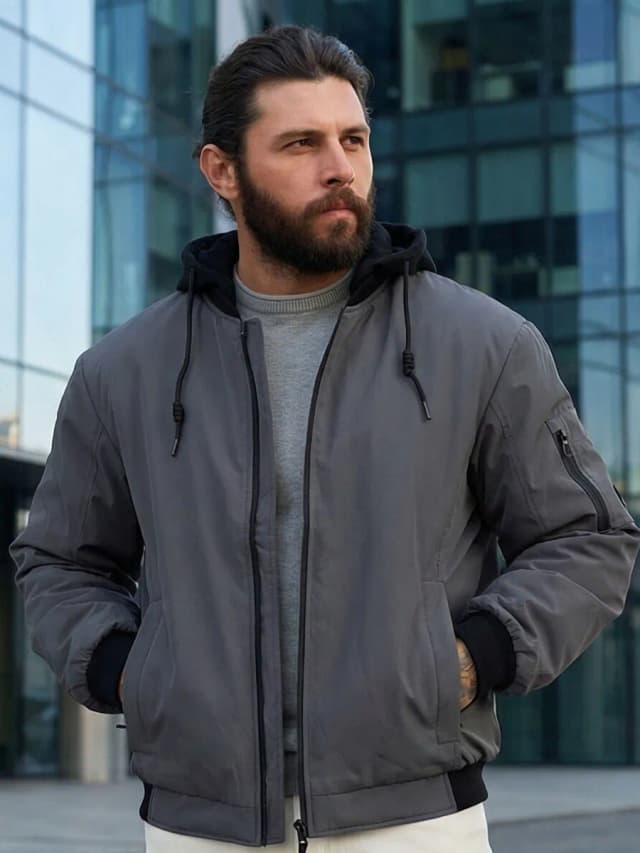 Демисезонный бомбер со съёмным трикотажным капюшоном
