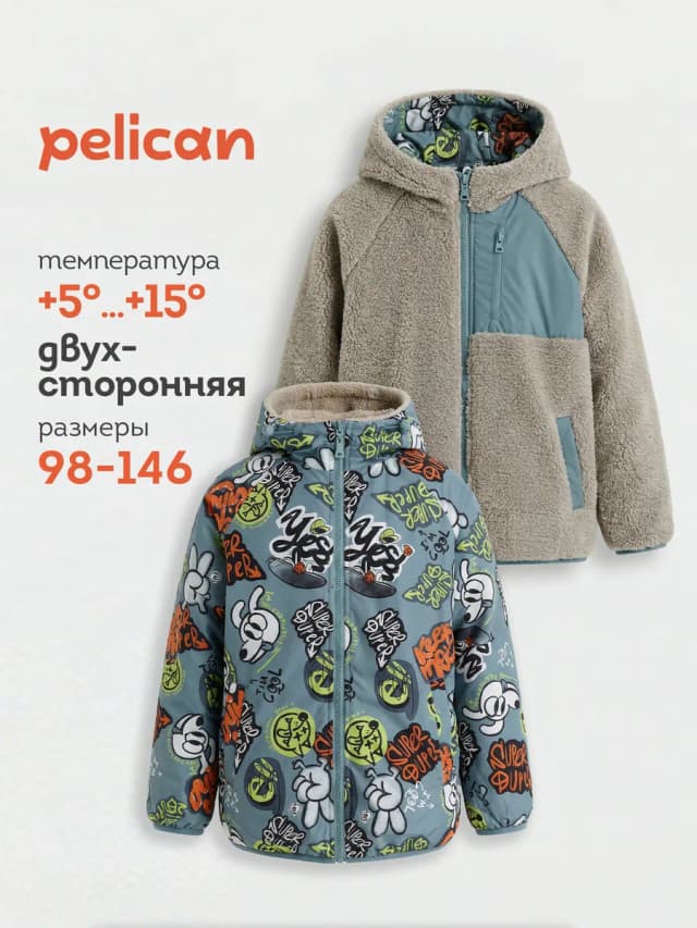 Куртка демисезонная двусторонняя для мальчика с капюшоном