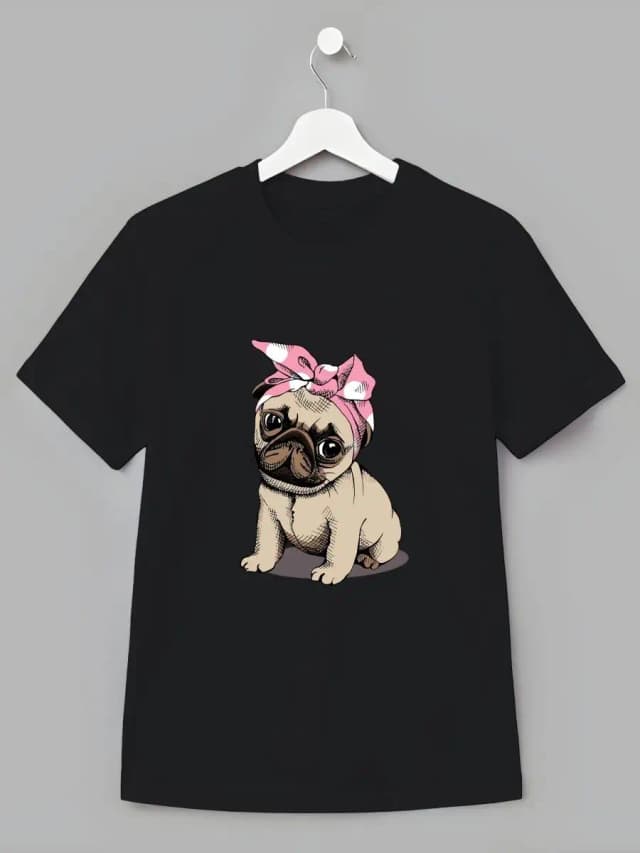 Детская Футболка Мопс Розовый Бант Милый Принт Собака
